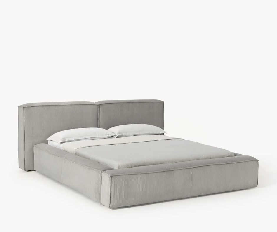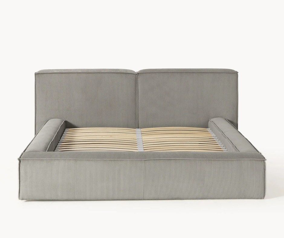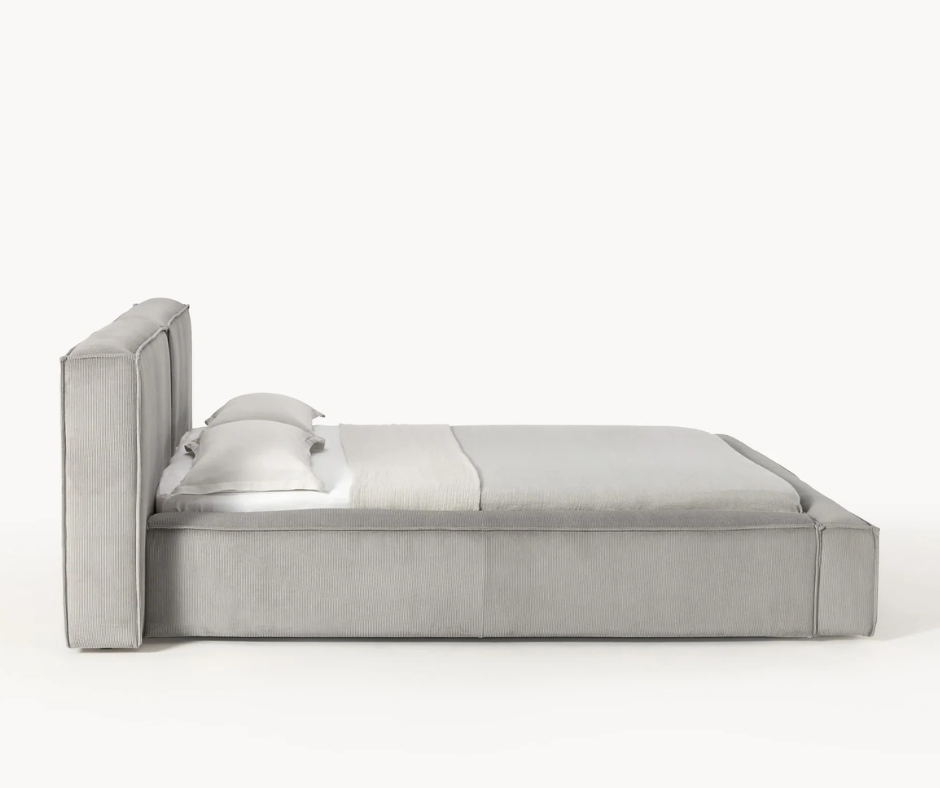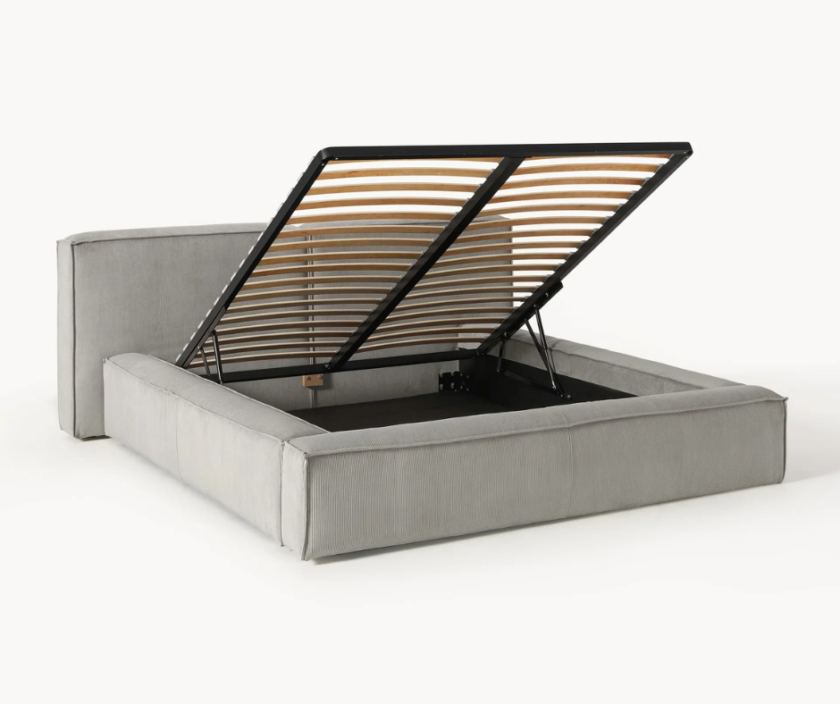 Lit matelassé en velours côtelé avec rangement